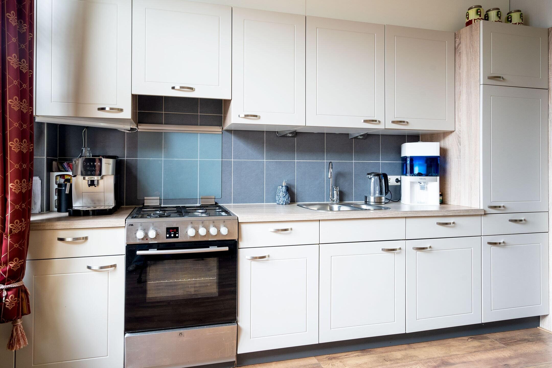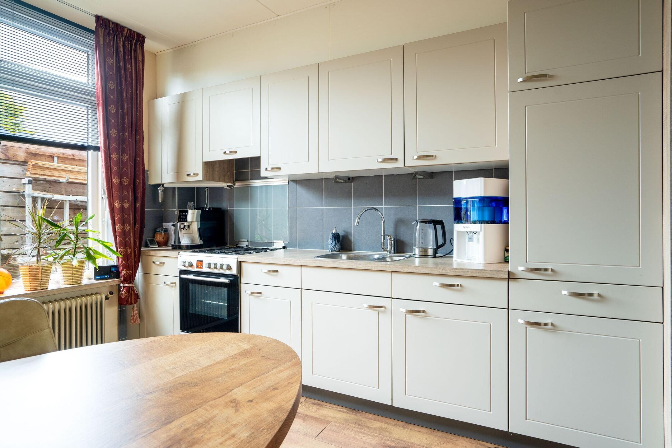 Daarnaast is er een praktische bijkeuken/berging. De vernieuwde laminaatvloer is volledig vlak en drempelloos, wat de woning zeer geschikt maakt voor minder validen of voor wie graag toekomstbestendig woont.