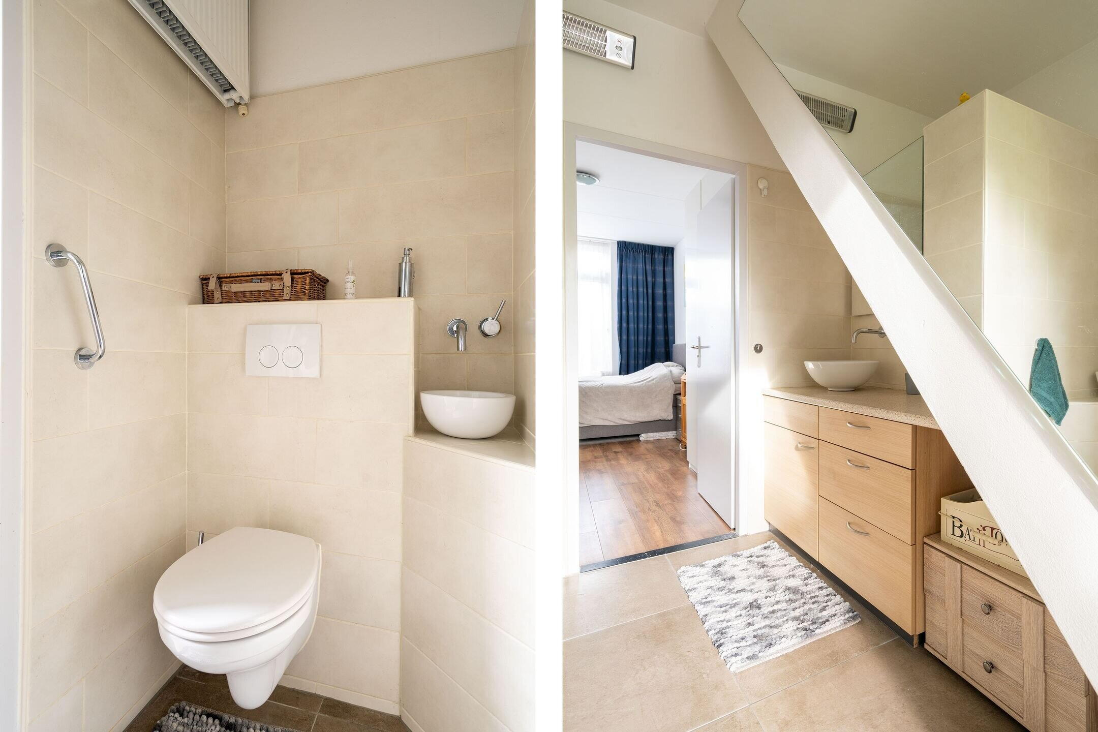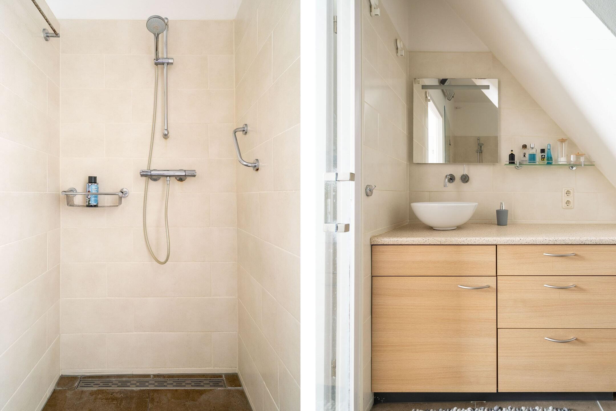 - Douche, toilet, en wastafel